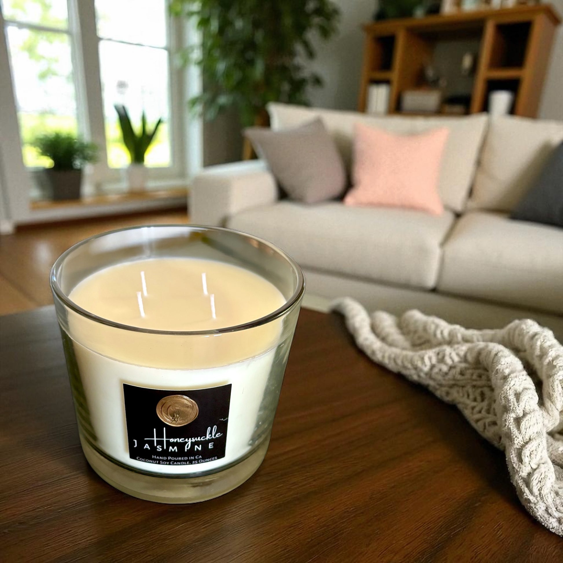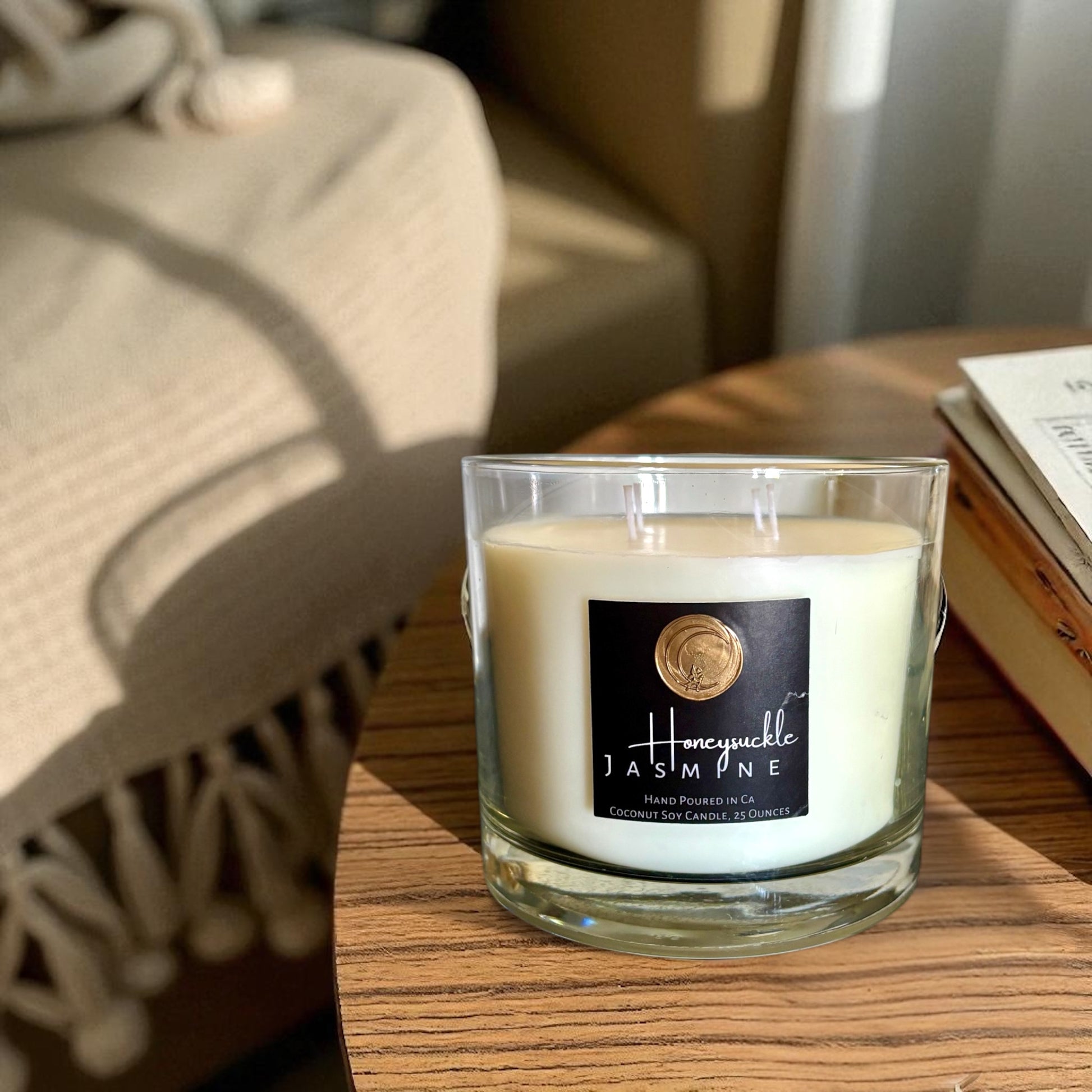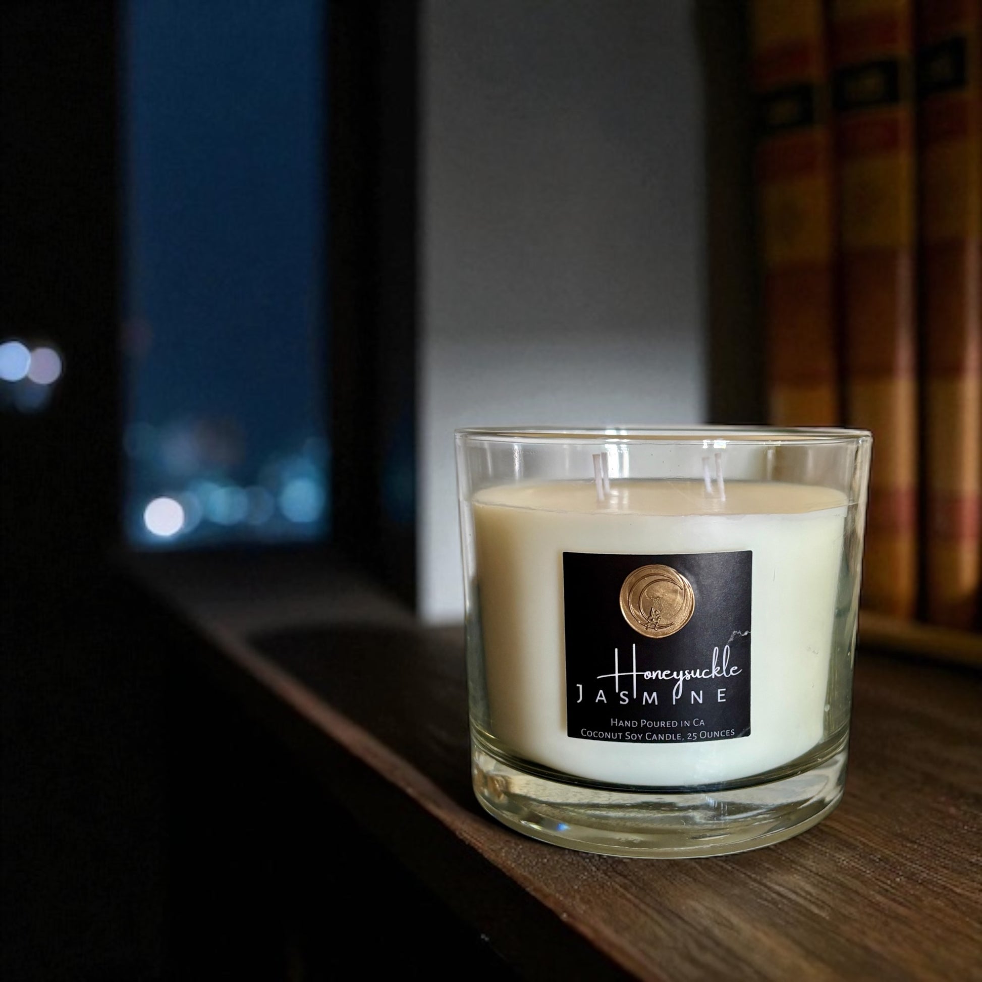 Indulge in botanical bliss with our Honeysuckle Jasmine candle. With the lovely scent of jasmine and the divine aroma of honeysuckle, this candle will transport you to a flower garden, filling your space with luxurious fragrance. Elevate your senses with this exquisite candle.